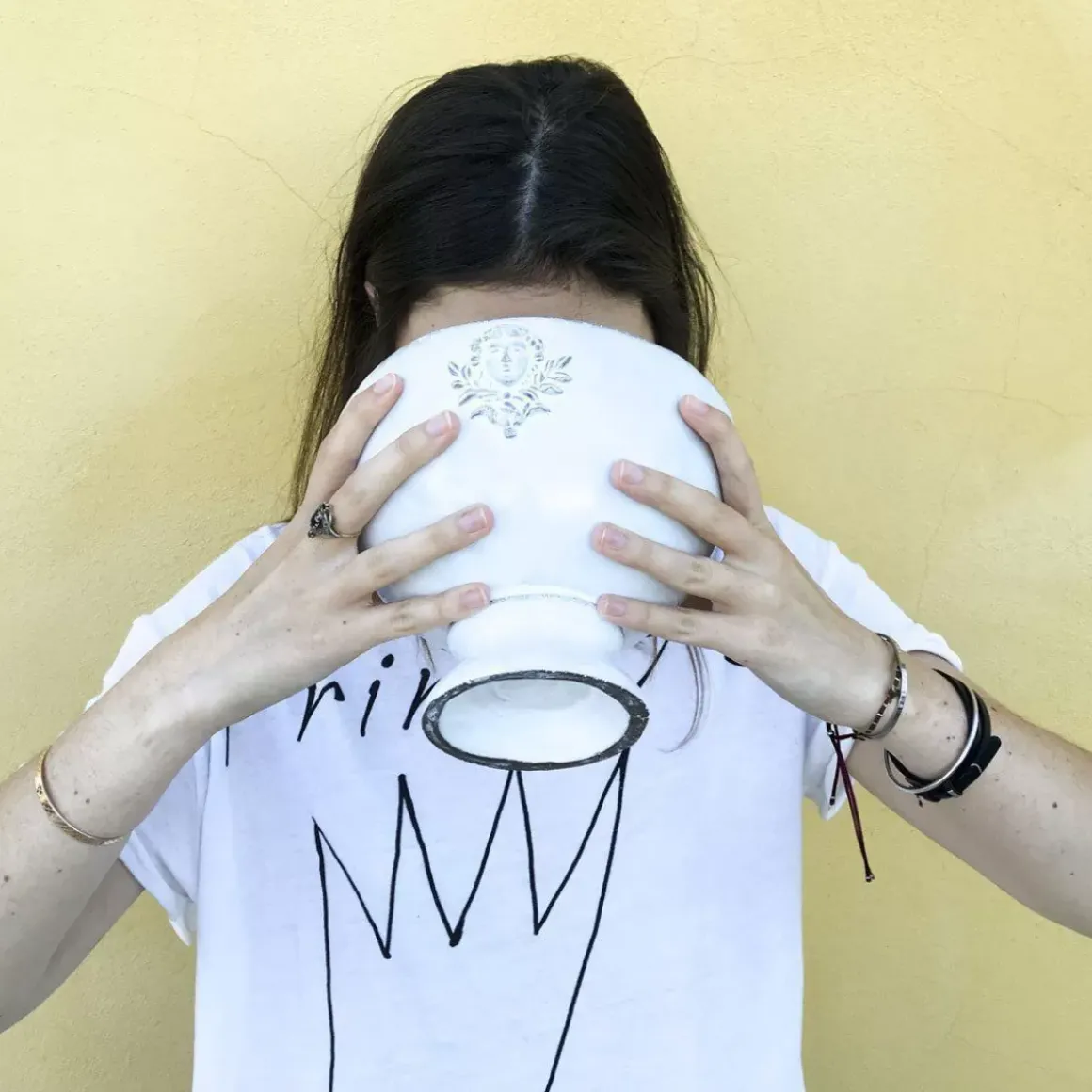 Grand Bol Simple Et Elance Avec Un Visage En Bas-Relief. Pour Une Grande Soupe, Une Salade Ou Pour Servir Des Tomates Cerises A L’Heure De L’Apero