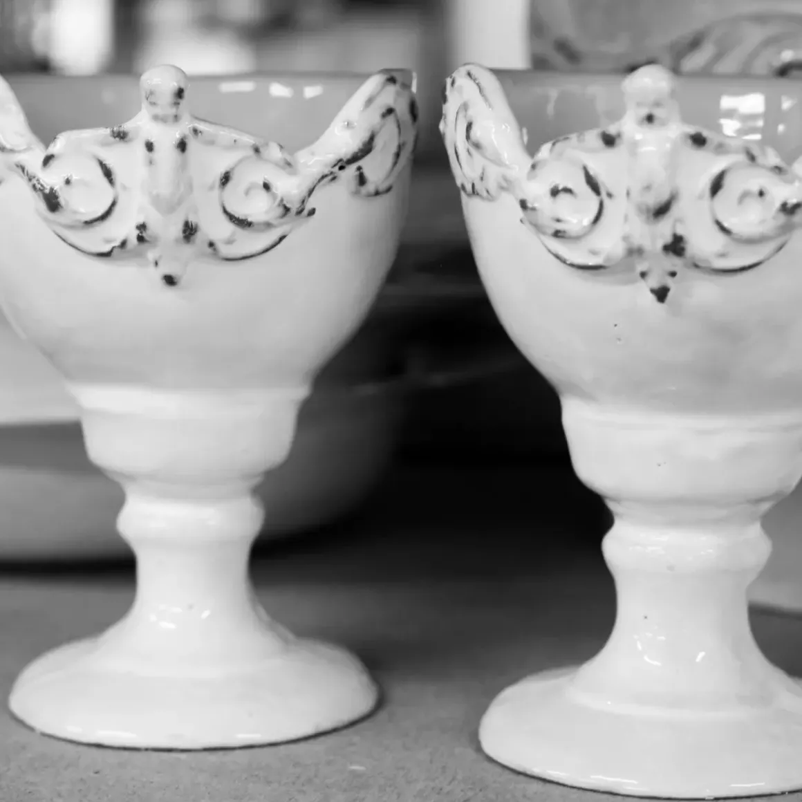 Coupelle Sur Pied En Ceramique Avec Un Petit Ange Incruste. Pour Y Deposer De Petits Objets, Des Bijoux Ou Pourquoi Pas Pour Une Salade De Fruits Rouges
