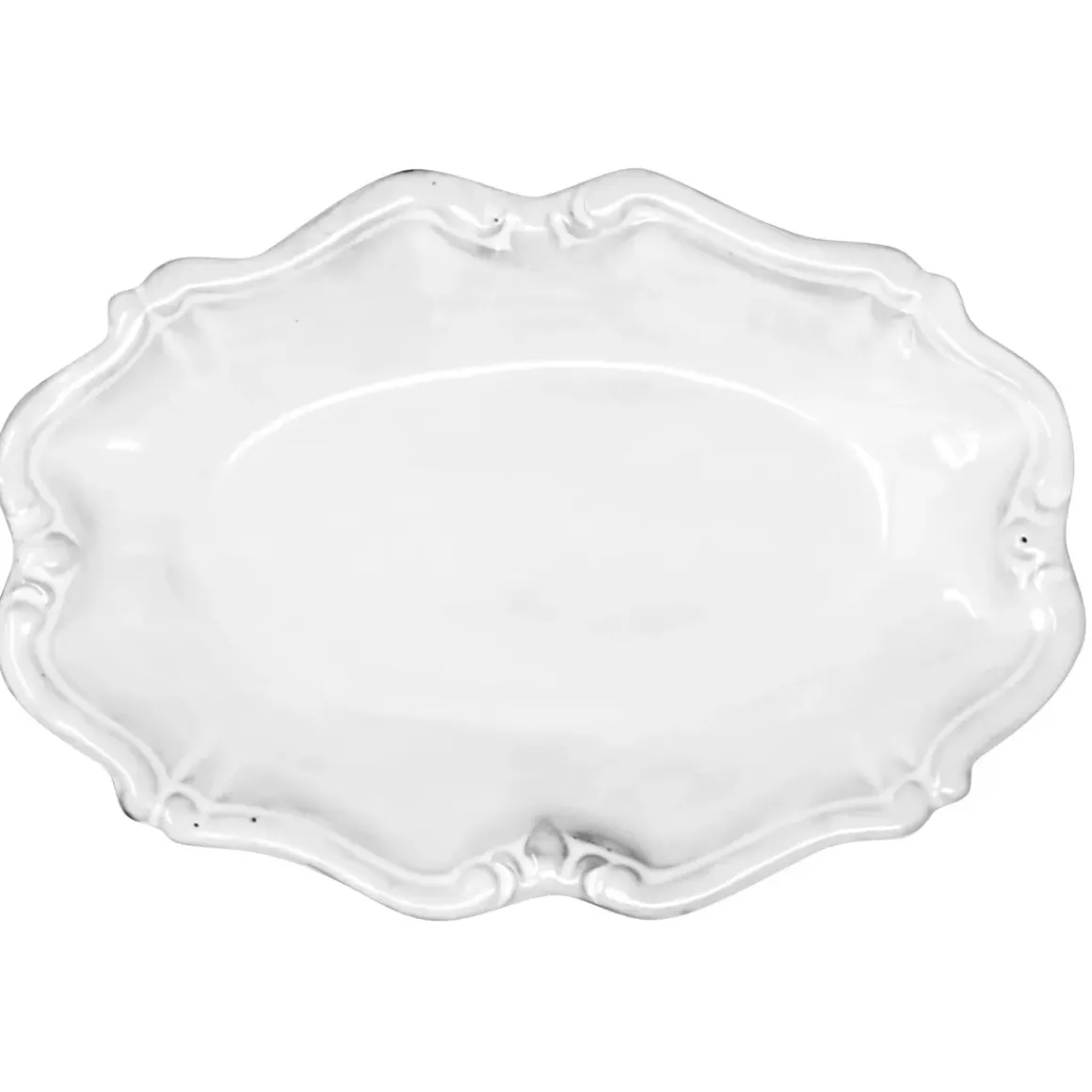 Plat En Ceramique Blanche Avec Des Bords Decores. Il Peut Etre Utilise Pour Presenter Vos Creations Culinaires, Entrees, Desserts Ou Aperitifs, Etc.