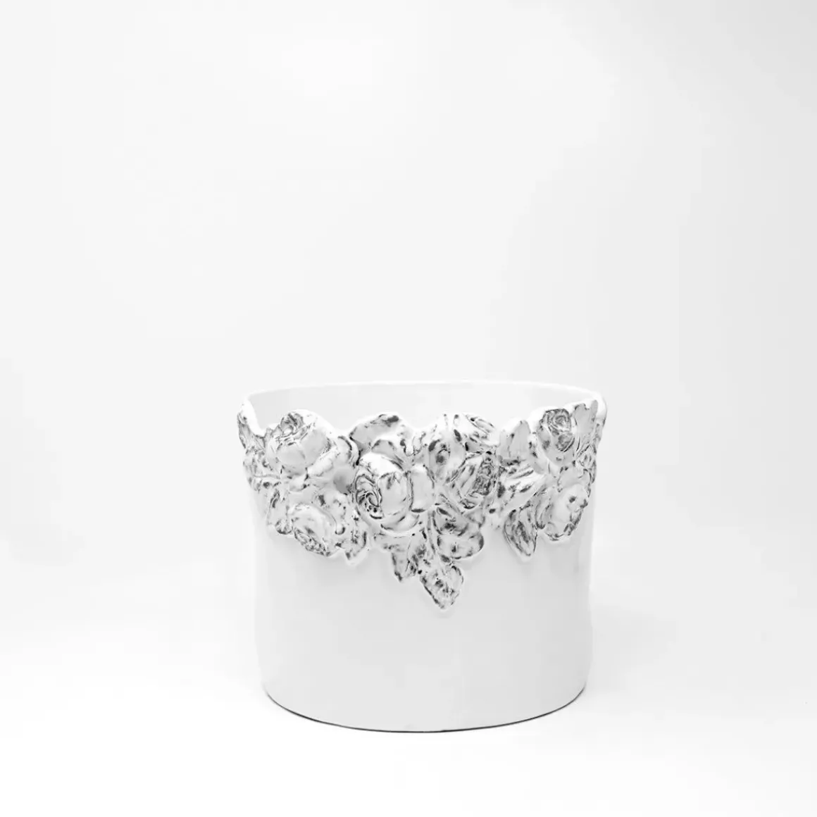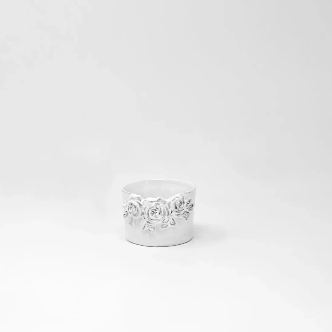 Pot Delicat Avec Un Bas-Relief De Rose Cisele Sur Son Bord.