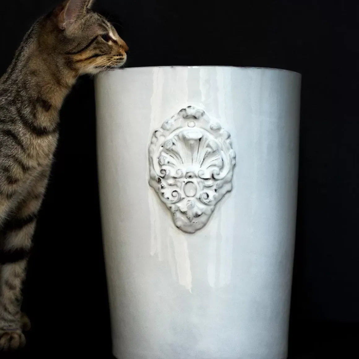 Seau A Champagne En Ceramique Blanche Avec Un Bas-Relief Coquillage De Chaque Cote En Guise De Poignee